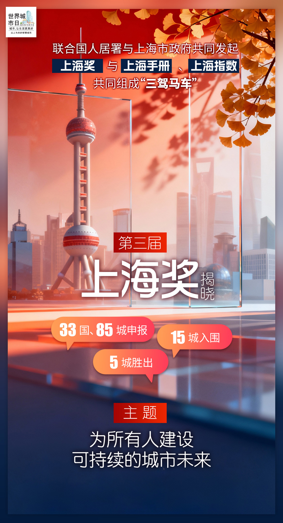 2025年世界城市日全球主场活动在哥伦比亚波哥大举行,第三届全球可持续发展城市奖(上海奖)获奖城市在会上揭晓。此次共有5个城市获颁“上海奖”,分别是阿尔及利亚阿尔及尔、哥伦比亚波哥大、芬兰埃斯波、韩国仁川、沙特阿拉伯麦地那。