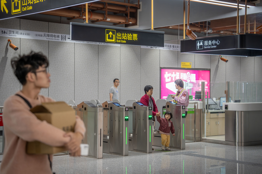 采用“常开门”模式的进出站闸机提高通勤效率,并配有工作人员值守。
