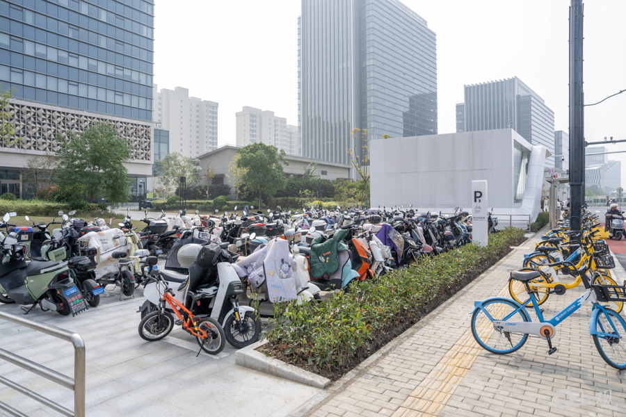 该站的每个地铁出入口旁均设置了非机动车停车场。